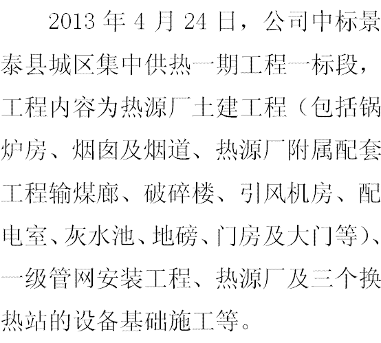 公司中標景泰縣城區(qū)集中供熱一期工程