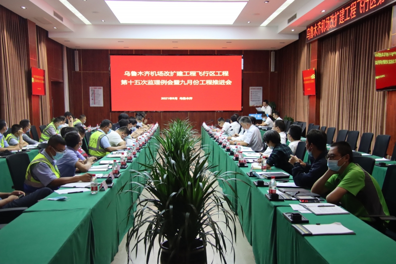 9月3日上午,烏魯木齊國際機場改擴建工程飛行區(qū)第十五次監(jiān)理例會暨九月份工程推進會順利召開。此次會議由烏魯木齊臨空開發(fā)建設(shè)投資集團有限公司、烏魯木齊國際機場改擴建工程建設(shè)指揮部、烏魯木齊臨空中建機場建設(shè)運營有限公司、8家場道施工單位,3家監(jiān)理單位、2家第三方檢測單位以及相關(guān)參建單位的負責(zé)人、項目經(jīng)理參加。
