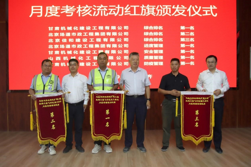 此次會議對施工單位八月份的相關(guān)工作進行了綜合考核,我司烏魯木齊機場項目經(jīng)理部在8家施工單位評比中獲得綜合第一名、安全第一名、防疫第一名的好成績,得到了業(yè)主方、擴建指揮部及監(jiān)理單位的一致認可。同時會議對九月份全場飛行區(qū)工程的相關(guān)工作進行了部署,下達了各標(biāo)段施工任務(wù)。