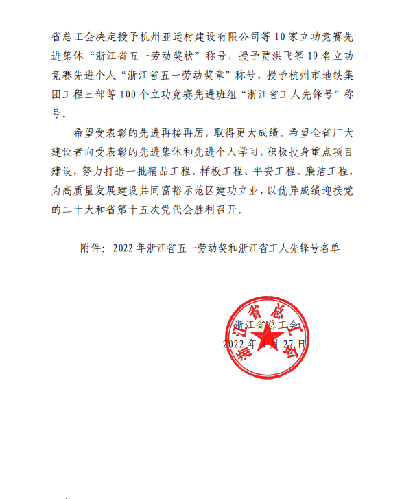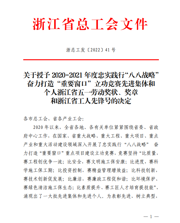 4月27日,我司新建浙江麗水機(jī)場(chǎng)(第一批)02 標(biāo)段項(xiàng)目部榮獲“浙江省工人先鋒號(hào)”稱(chēng)號(hào)。