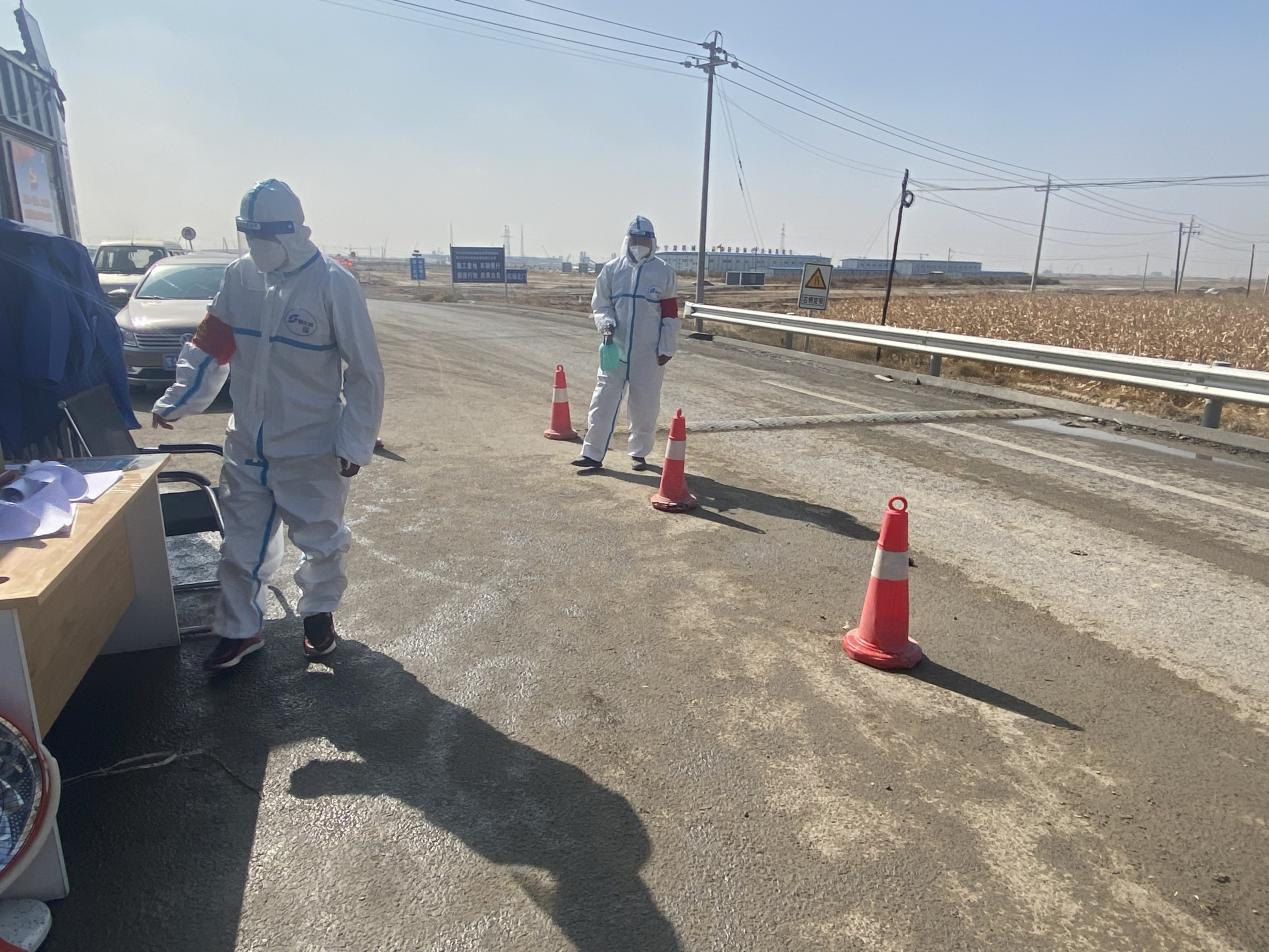 項(xiàng)目部黨支部書記杜騫,第一時(shí)間安排人員對(duì)北門卡口進(jìn)行布置,安排采購疫情物資(醫(yī)用口罩、防護(hù)服、測(cè)溫槍、消毒液等),與10月1日10點(diǎn)左右在新機(jī)場(chǎng)北門疫情防控卡點(diǎn)布設(shè)完畢,配備了12名項(xiàng)目部管理人員(8小時(shí)三班倒)在卡口進(jìn)行疫情防控。新機(jī)場(chǎng)北門疫情防控卡點(diǎn)人員對(duì)過往車輛、人員進(jìn)行登記,掃碼、查看行程卡、核酸報(bào)告、登記來源地、去往地點(diǎn)。對(duì)無48小時(shí)核酸報(bào)告的人員進(jìn)行勸返。