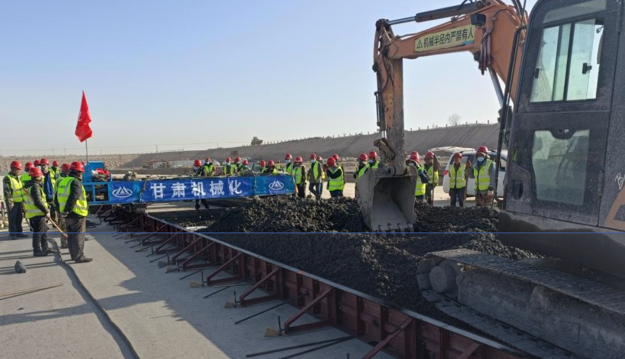 4月20日,由我司承建的蘭州中川國(guó)際機(jī)場(chǎng)三期擴(kuò)建工程飛行區(qū)場(chǎng)道工程(五標(biāo)段)道面混凝土試驗(yàn)段正式開(kāi)倉(cāng)澆筑。