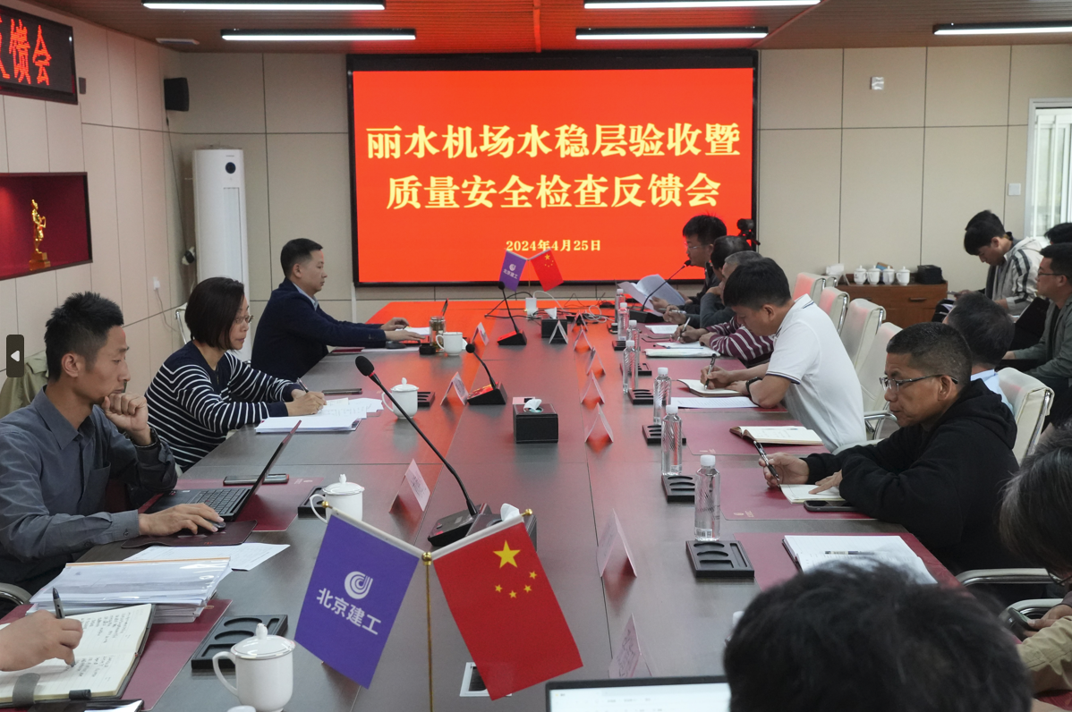 4月25,項目檢查結束后,檢查組在機場建設指揮部召開了本次監(jiān)督檢查反饋會。會上,檢查組對我司在麗水機場建設中取得的成果給予了充分肯定,也對檢查中發(fā)現(xiàn)的具體問題,提出了針對性的整改要求。