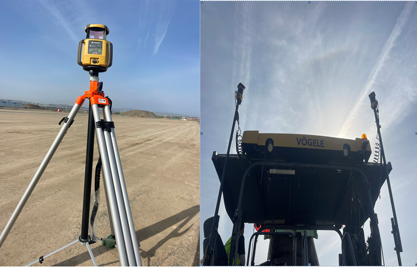 為保證攤鋪順利進(jìn)行,項目部前期做好各項準(zhǔn)備工作,在施工過程中,嚴(yán)格把控施工環(huán)節(jié),確保攤鋪施工銜接有序,高效優(yōu)質(zhì),一次成型,并使用mmGPS 3D攤鋪技術(shù)進(jìn)行兩機(jī)聯(lián)鋪。